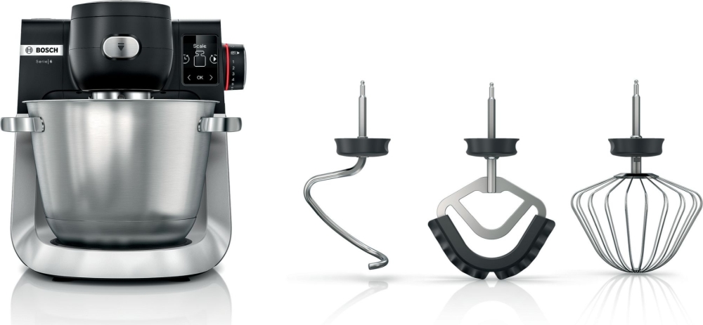 | Други | Integrated timer; Easy assembly of attachments thanks to color coding; 2.5" touchscreen display; Home Connect; EasyArmLift; whisk (perfectly fitting the bowl), all-metal whisk (height adjustable) and a high-quality kneading hook with a special shape |