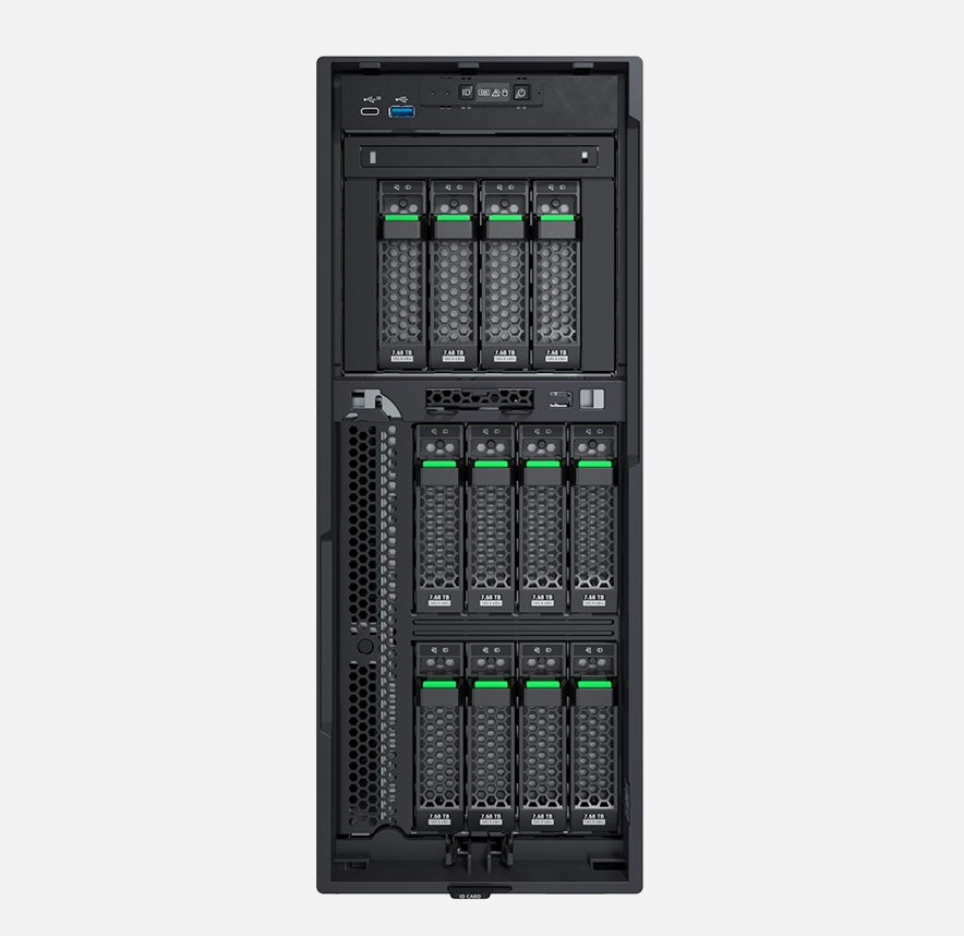 | Този висококачествен сървър е подходящо решение за различни по вид и големина работни натоварвания и може да бъде оптимизиран за работа в различни индустрии. Той ви предлага отлична производителност и ви предоставя отлична продуктивност при работа с различни приложения, включително работни натоварвания като файл/печат, имейл, ERP/CRM, съобщения, централизирано съхранение на данни и специфични за индустрията приложения. Новият по-голям брой ядра, по-бързите процесори и удвоеният капацитет на паметта правят това устройство изключително мощно сървърно решение. По отношение на съхранение и работа в мрежа, NVMe устройствата предлагат ултра бързо съхранение за приложения с ниска латентност, докато огромният капацитет за съхранение на сървъра предлага сигурна, рентабилна възможност за консолидиране и управление на големи набори от данни, съчетани с потенциал за растеж. Fujitsu PRIMERGY TX1330 е полезен за околната среда и за вашия бизнес – високоефективното захранване ви предлага повишена надеждност и по-нисък разход на енергия. Устройството за резервно захранване на батерия защитава вашата ценна инвестиция, като поддържа безопасно изключване на захранването и разширено време за работа на сървъра в случай на загуба на захранване. Въздушният поток и технологията Cool-safe Advanced Thermal Design позволяват разширен диапазон на работа (5 °C до 45 °C) и също така намаляват шумовите емисии, което прави сървъра подходящ за разполагане в обществени зони. |