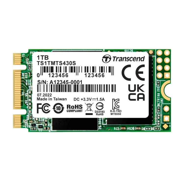Твърд диск, Transcend 1TB, M.2 2242 SSD, SATA3 B+M Key, TLC