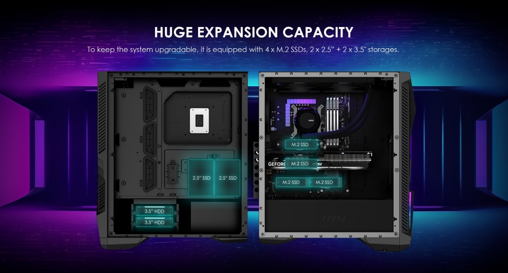 Настолен компютър, MSI MPG Infinite X2 14NUF7-449EU, 14700KF (20C/28T, eC 2.5GHz / pC 3.4GHz / 5.6GHz Boost, 33MB, 125W), Liquid cooling, RTX 4070 Ti SUPER VENTUS 2X 16G, 850W PSU Gold, M.2 PCIE 2TB SSD, RAM 32GB (2x16GB DDR5, up to 128GB), Z790 chipset, Windows 11 Home