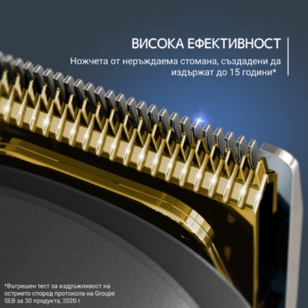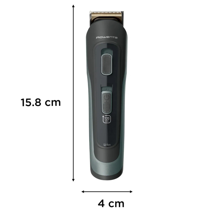 | Дължина на подстригване, mm | minimum cutting length 0.5mm, hair blade 42mm, 6 fix hair combs, hair cutting lengths 3, 6, 9, 12, 15, 18mm, beard blade 32mm, 3 fix beard combs |
