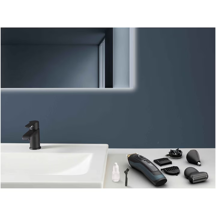 | Length of haircut, mm | minimum cutting length 1.0mm, hair blade 42mm, 6 fix hair combs, hair cutting lengths 3, 6, 9, 12, 15, 18mm, beard blade 32mm, 3 fix beard combs |