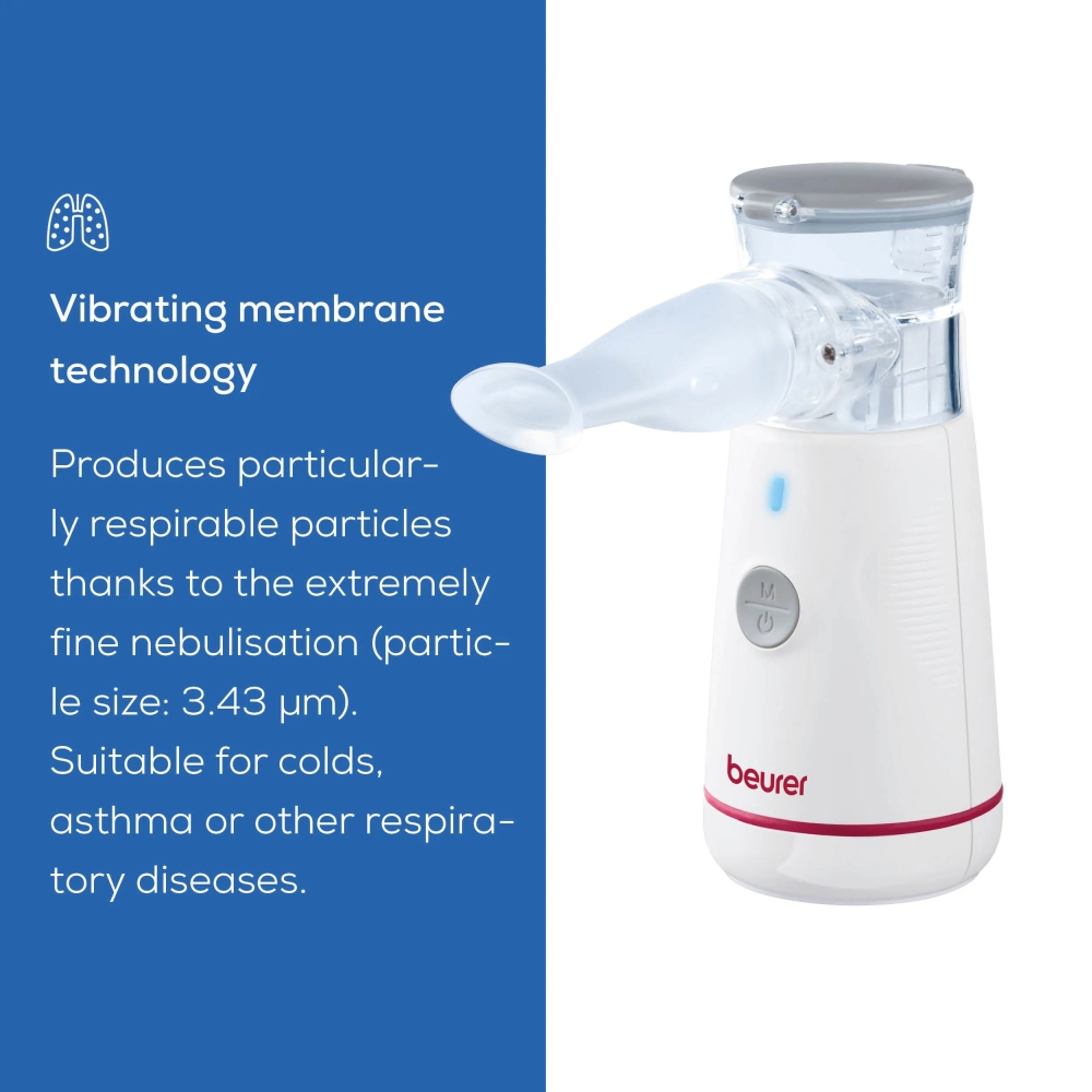 Инхалатор, Beurer IH 47 Nebuliser, vibrating membrane technology, Small and light; whisper-quiet operation; self-cleaning function; Mouthpiece, adult mask, children's mask, storage bag and USB-C cable
