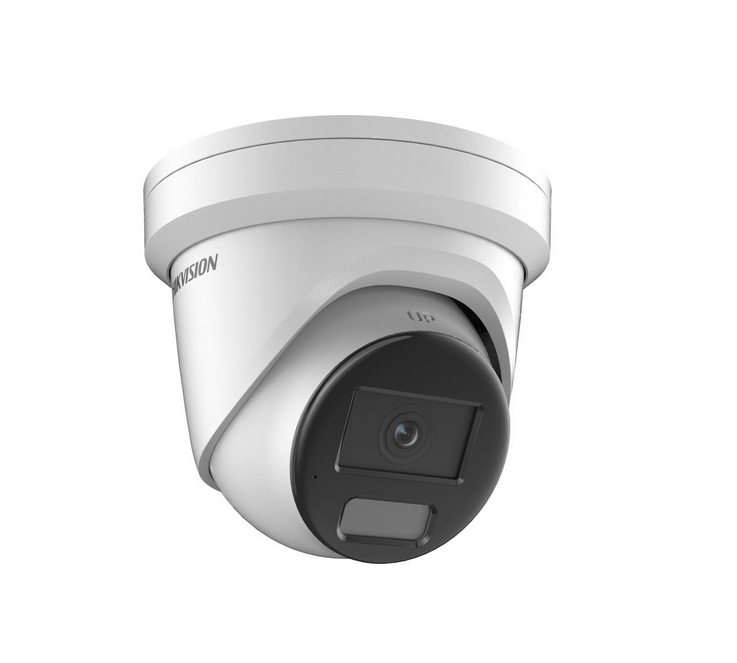 Camera, HikVision 4 MP Smart Hybrid Light with ColorVu Fixed Turret Network Camera, 4 mm, F1.0, IR, White Light up to 30m, H.265+, IP67, built-in microphone, built-in memory card slot (up to 512 GB), 12Vdc/PoE 6W