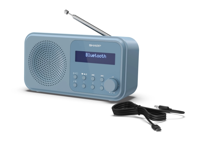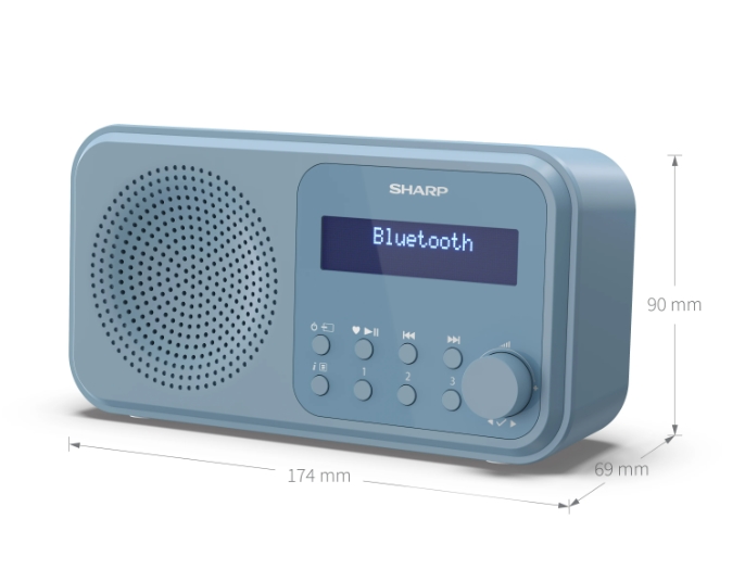 Радио, Sharp Radios DR-P420(BL), PORTABLE DIGITAL RADIO, Bluetooth 5.0, 20 DAB+/DAB/FM, Auto time/date, LCD Display, Dual alarm,Micro USB x1 (power supply),3.5mm Headphone jack / line-out, STEEL BLUE