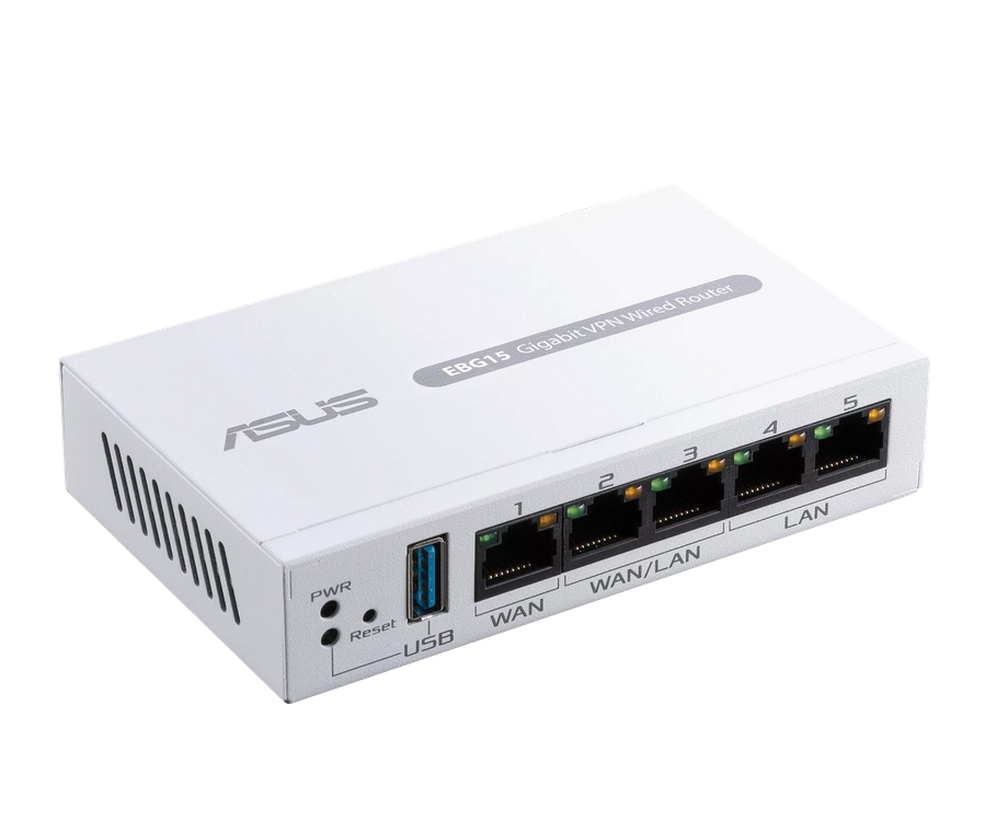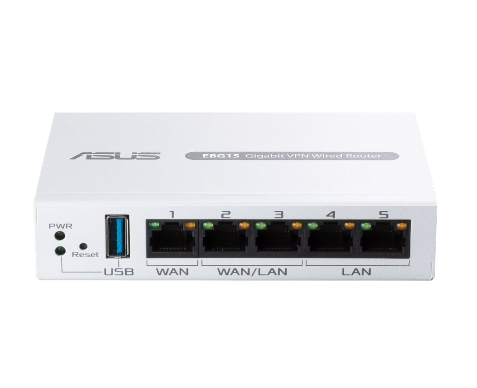 Рутер, Asus Business Gigabit VPN wired router, ExpertWiFi EBG15, 1 gigabit WAN+2 gigabit WAN/LAN, USB port backups, Bluetooth® 3.0, SDN, customized guest portal, Commercial-Grade Network Security & VPN, wall mounting, White