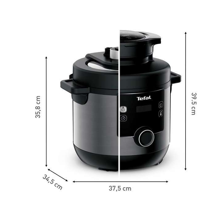 | Мултикукърът, който е тенджера под налягане, уред за готвене с горещ въздух и още - всичко това в едно. Запознайте се с новия си любим съюзник за лесно приготвяне на перфектни ястия: Tefal Turbo Cuisine & Fry! Този изключителен мултикукър с капак за готвене с горещ въздух предлага пълен пакет за здравословни и вкусни резултати с едно завъртане на копчето. Открийте рецепти за безкрайно вдъхновение и приятни за публиката ястия - от леки и хрупкави пържени картофи до печено месо и други. Използвайте Turbo Cuisine като тенджера под налягане за перфектни резултати до 3 пъти по-бързо* - всичко това без необходимост от наблюдение. |