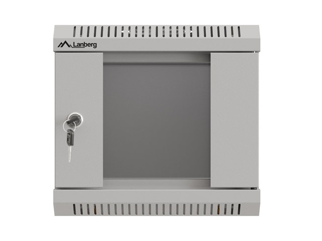 LANBERG сървърни шкафове и аксесоари >> Lanberg rack cabinet 10" wall-mount 4U/300x300 (flat pack) with glass door grey