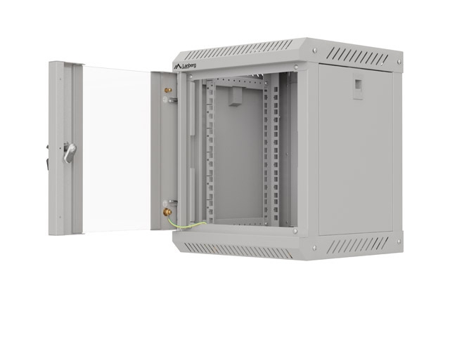 LANBERG сървърни шкафове и аксесоари >> Lanberg rack cabinet 10" wall-mount 6U/300x300 (flat pack) with glass door grey