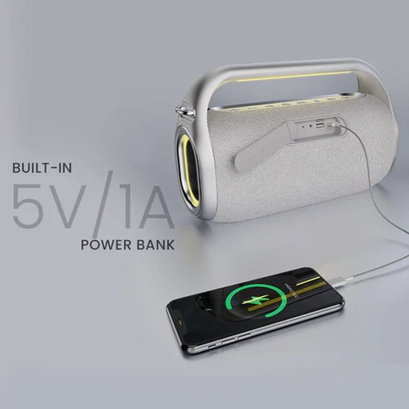| HiFuture MusicBox100 е преносима Bluetooth тонколона, идеална за приключения на открито и партита, която предлага впечатляващ 70W звук в компактен дизайн. Тя разполага с мощен DSP процесор и многобандов еквалайзер, които позволяват оптимално аудио представяне според вашите предпочитания. Вградената батерия с капацитет от 8000 mAh осигурява дълго време на възпроизвеждане, а функцията за външна батерия с изход 5V/1A ви позволява да зареждате други устройства в движение. Динамичните RGB светлини, синхронизирани с музиката, добавят визуален ефект и създават парти атмосфера. Тонколоната поддържа Bluetooth 5.3 за стабилна и бърза безжична връзка, както и TWS за сдвояване на две устройства за по-обгръщащо звучене. Вграденият микрофон осигурява приемане на обаждания директно през тонколоната, а включените два отделни безжични микрофона и дистанционно управление превръщат MusicBox100 в отлично решение за караоке и забавление с приятели. |