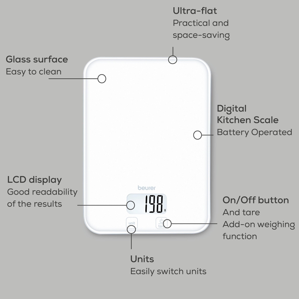 Везна, Beurer KS 19 Pure White kitchen scale; 5 kg / 1 g