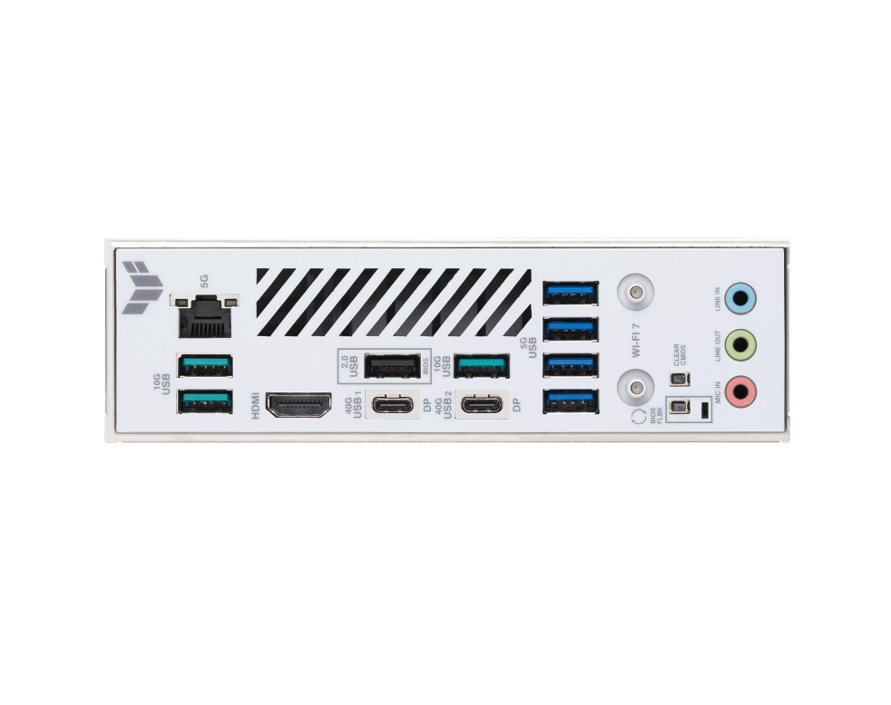 | Интерфейс | 3 USB4 Type-C, 9 USB Type-A, HDMI, Realtek 5Gb Ethernet port, 3 Audio jacks, BIOS FlashBack button, Clear CMOS button |
