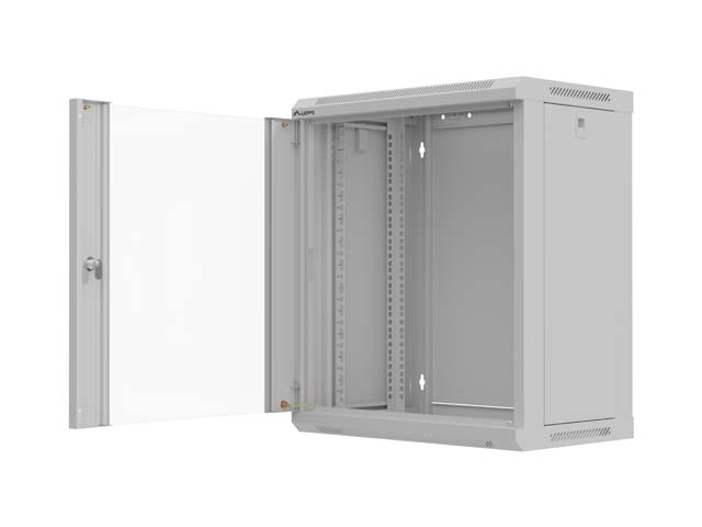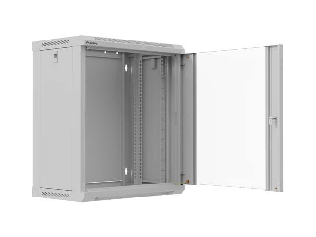 Комуникационен шкаф, Lanberg Rack Cabinet, 19" wall-mount 12U/540x350 (flat pack) with glass door, Grey