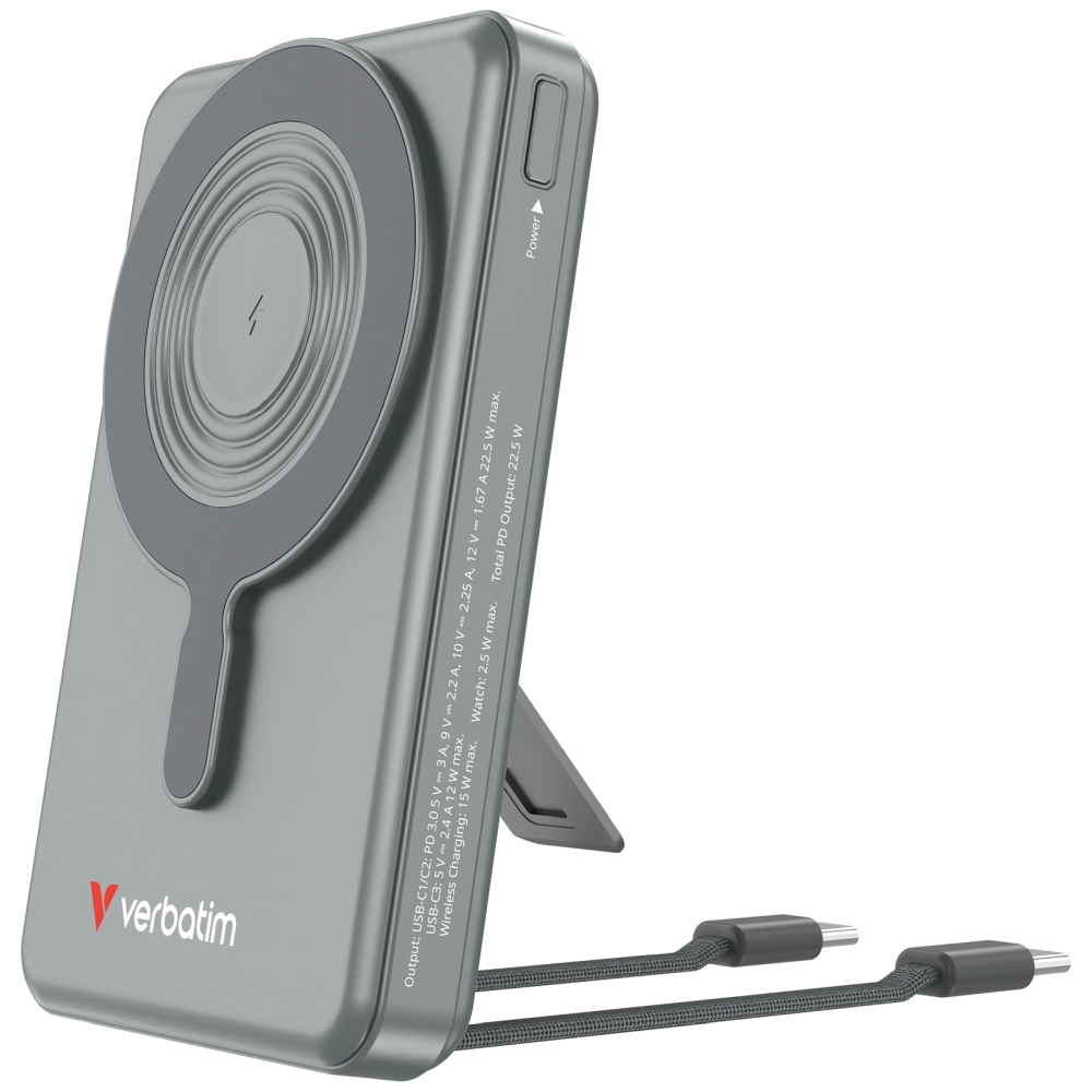 Външна батерия, Verbatim Power Bank Magnetic Wireless 10.000 mAh C+C Display Grey