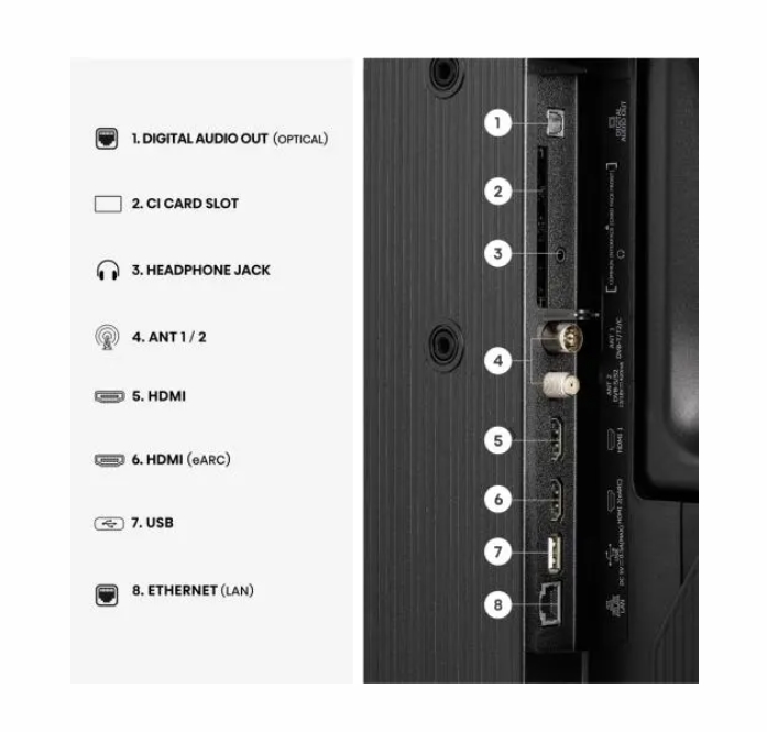 | Изводи за свързване | 2 HDMI, 2 USB, S/PDIF out, Headphone, 2 RF, CI+ |