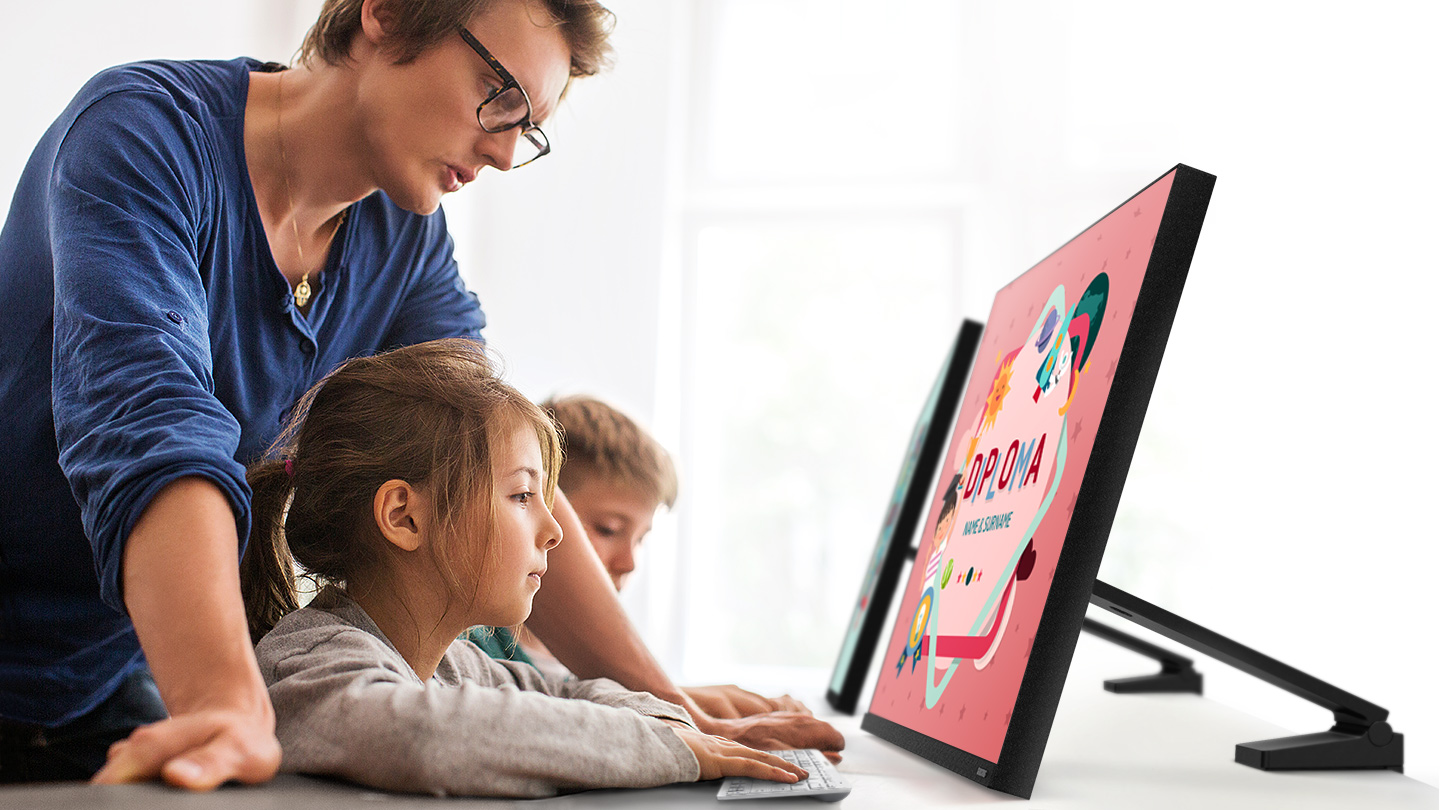 Със своя тънък панел с 3-странен безрамков екран, Samsung Space Monitor предлага стилно решение за всяко работно място или домашен интериор.