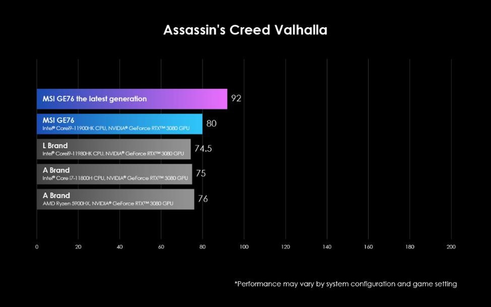 „Когато говорим за бързодействие, Raider GE е на върха на гейминг индустрията,” каза Eddie Chen, Маркетинг лидер за преносимите компютри в MSI. Серията MSI Raider GE не само доказва възможностите на 12-тото поколение процесори i9 и Nvidia GeForce RTX 3080 Ti Laptop GPU, но разполага с ексклузивната технология MSI OverBoost, която доставя до 220 вата обща мощност. Това е 13% повече в сравнение с други марки.