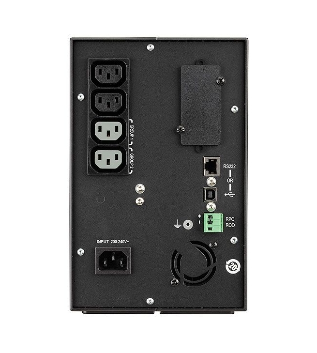 | Други | Communication Ports: 1 USB port + 1 RS232 serial port and relay contacts (USB and RS232 ports cannot be used simultaneously), 1 mini terminal block for remote ON/OFF and Remote Power Off;Communication Slot: 1 slot for Network-MS,ModBus-MS or Relay-MS card |