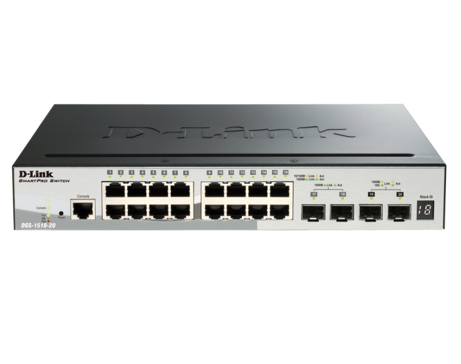 D-LINK мрежови продукти >> D-Link 20-Port Gigabit Stackable SmartPro Switch including 2 SFP ports and 2 x 10G SFP+ ports