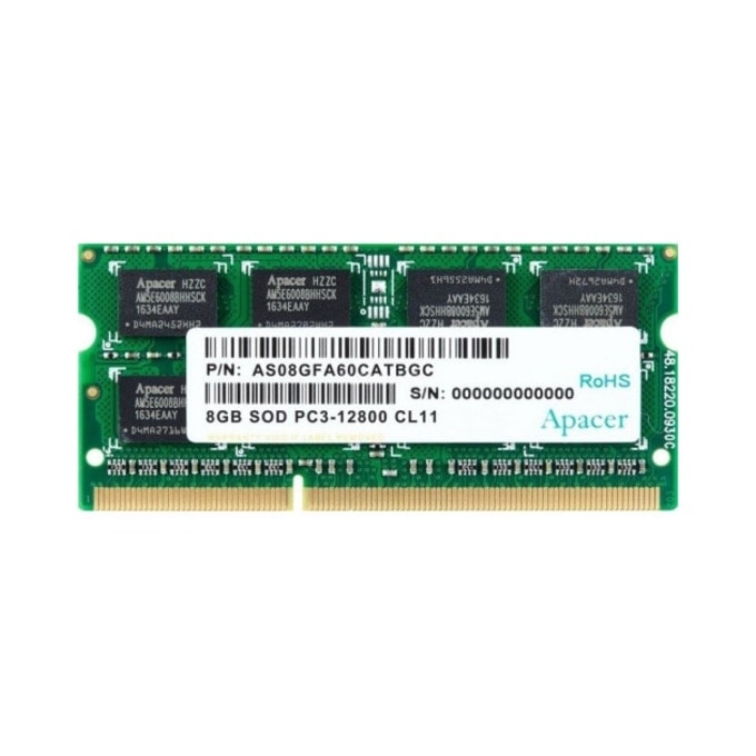Memory, Apacer 8GB Notebook Memory - DDR3 SODIMM PC12800 512x8 @ 1600MHz