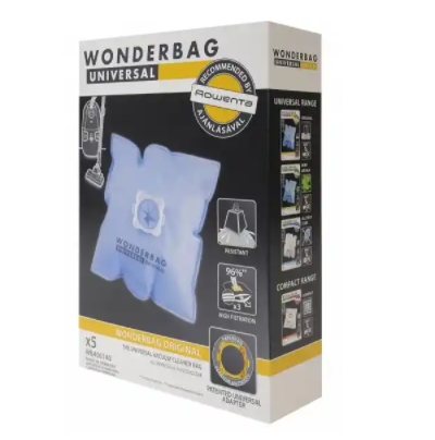 Торбичка за прахосмукачка, Rowenta WB406140, WonderBag Classic, Vacuum Bags, Set of 5 bags + 1 adapter ring (universal), 3-layered, Universal, Textile,