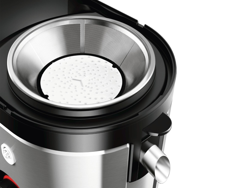 | Световна новост: първата сокоизтисквачка с професионален керамичен нож и голям отвор. Всичко е по-бързо и по-лесно. Най-голяма производителност и лесно почистване благодарение на керамичен нож. Много бързи резултати и при твърди плодове и зеленчуци чрез мощен 1000 ватов мотор и две степени на работа. Бързо и лесно изтискване на сок без предварително нарязване чрез професионален отвор (84 мм). Практичен чучур с DripStop предотвратява капане и осигурява чиста работна площ. С един работен процес можете да добиете до 1,5 л сок. |