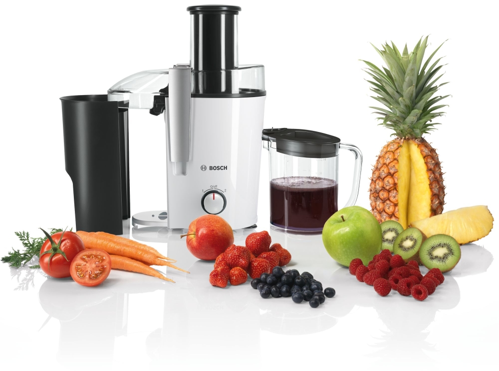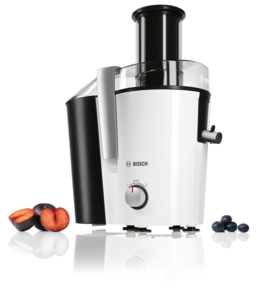 Сокоизстисквачка, Bosch MES25A0, Centrifugal juicer 700 W, 2 speeds, 2 lt pulp container, 1.25 ltr juice container & foam separator, XL feeding tube (73 mm), ceramic knife, s/s sieve, plastic body, die-cast aluminum clamps, juice outlet with drip-stop and made of stainles