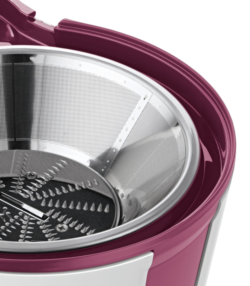 | Мощната сокоизстисквачка работи с цели плодове без необходимост от предварително рязане: бързо, лесно и чисто. Голям отвор за пълнене за плодове (цели ябълки) и зеленчуци – без нужда от предварително рязане. Практичен чучур с DripStop предотвратява капане и осигурява чиста работна площ. Практично използване с две скорости за твърди и меки плодове. SafetyStop осигурява ефикасна защита срещу нараняване: Когато отваряте капака по време на работа, двигателят незабавно и автоматично спира за секунди. Уредът може да бъде включен само ако всички части са правилно сглобени. |
