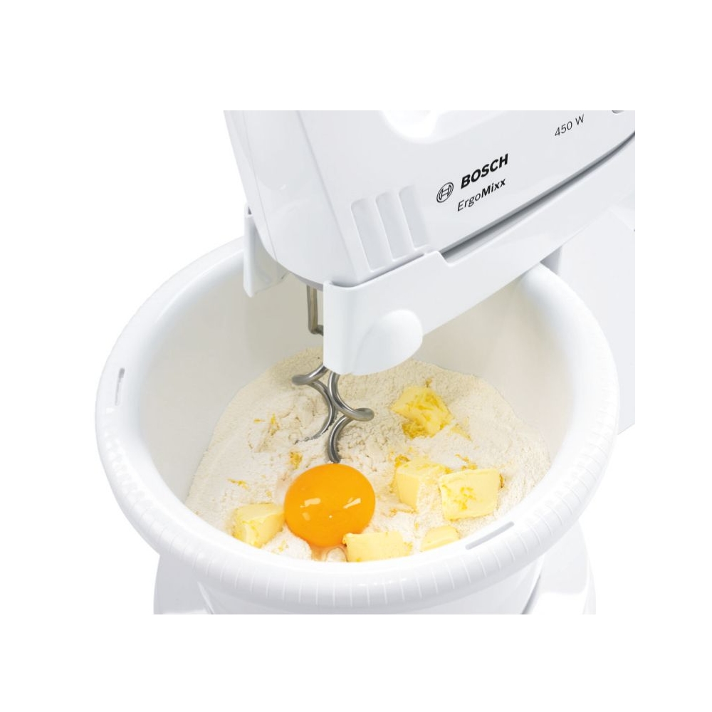 Handmixer, Bosch MFQ36460, Hand mixer, 450 W, White, includes bowl and stand