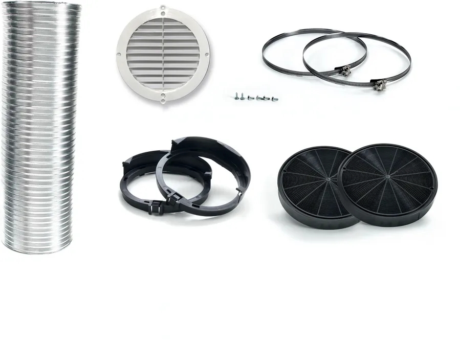 | За режим на рециркулация на въздуха. Състои се от: филтър с активен въглен (2 броя), гъвкава тръба o 150 mm, 800 mm дължина с 2 скоби, монтажен комплект. |