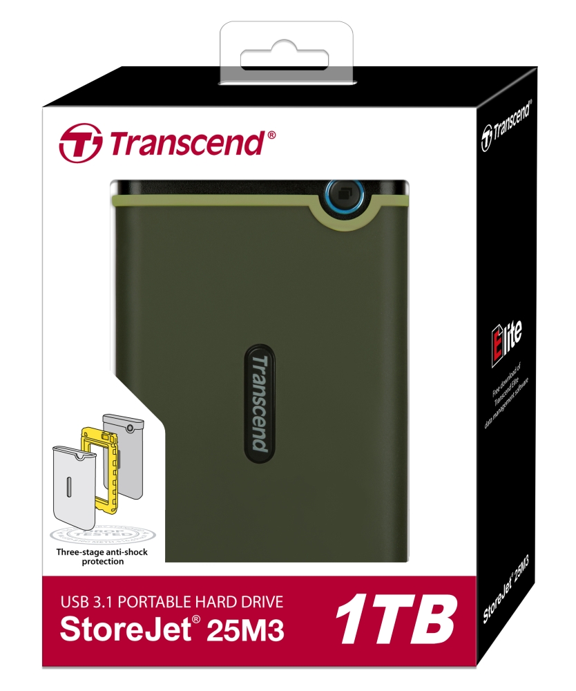 Твърд диск, Transcend 1TB, 2.5" Portable HDD, StoreJet M3, Military Green, Slim