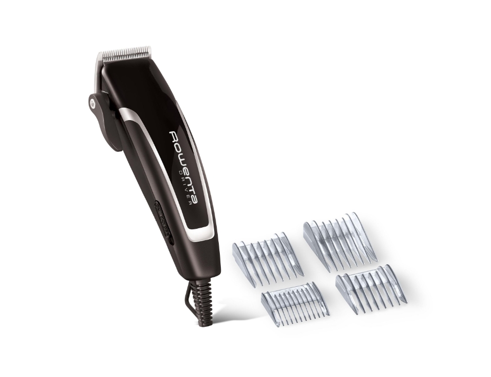 Машинка за подстригване, Rowenta TN1603F0, Hair clipper Driver Black, Professional blade AC motor, 4 combs (3,6,9,13mm), scissors, comb (42mm), cleaning brush & oil, corded