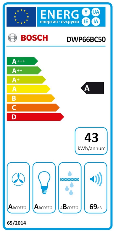 Cooker Hood, Bosch DWP66BC50, Chimney hood 60cm A, max 570 m3/h, 69 dB, Pyramidal design