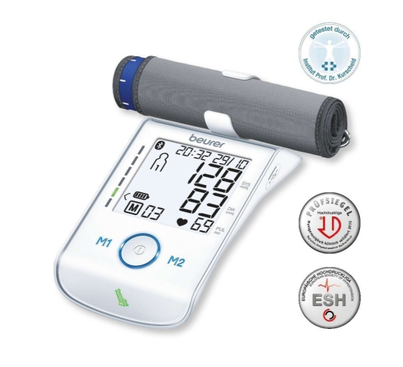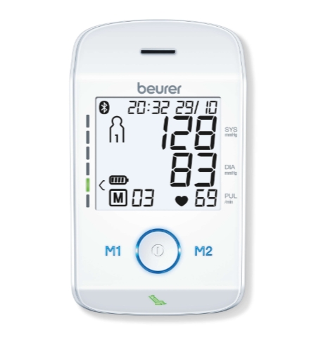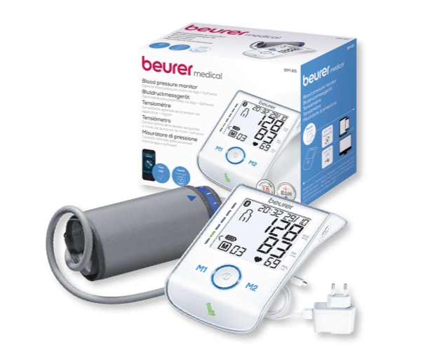 Апарат за кръвно налягане, Beurer BM 85 Blood pressure monitor; Bluetooth; XL display; two user memories; risk indicator; Arrhythmia detection; medical device; circumferences 22- 42 cm; storage bag