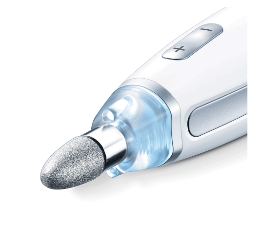 | Чрез този уред на Beurer за маникюр и педикюр вашите нокти винаги ще бъдат в блестящ вид. Този уред има следните характеристики: има вградена светлина за по-прецизно оформяне на вашия маникюр и педикюр; регулира се на етапи; дръжка с мека повърхност за хващане; постоянно регулиране на бързина и сила на работа; уредът е подходящ за диабетици; работи на ток; приблизително тегло 112 гр. В комплекта има включени: 10 броя висококачествени приставки от сапфир и филц; 10 приставки за еднократна употреба от шкурка; предпазна капачка за частици от нокти и кожа; 1 брой адаптер; 1 брой чантичка за съхранение. |