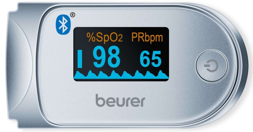 Пулсов оксиметър, Beurer PO 60 Bluetooth pulse oximeter, arterial oxygen saturation (SpO2) and heart rate (pulse),Bluetooth, Graphic pulse display, Memory spaces 100