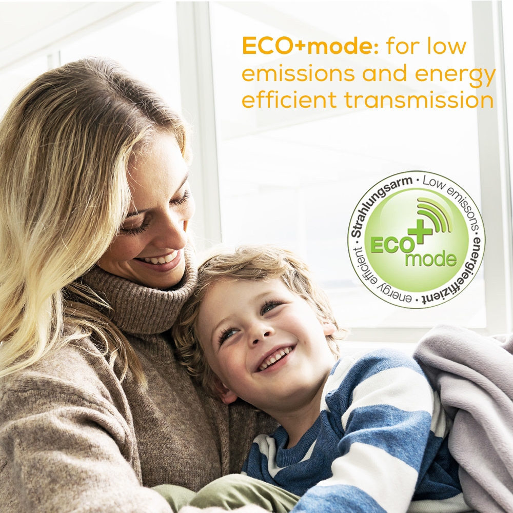 Special features Sleep mode: adjustable display switch-off after 2/5/10 minutes, Temperature alarm, ECO+ mode for low-emission and energy-efficient transmission, Motion and sound alarm.