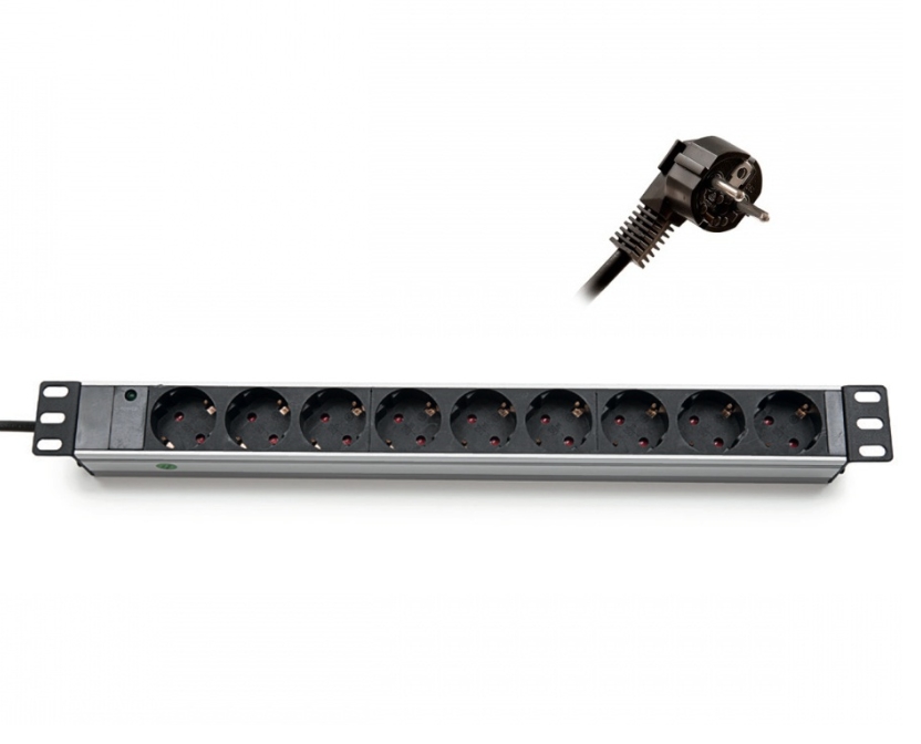 Аксесоар, Formrack 19" 9 way power outlet strip (Schuko 230V) Aluminium 1U