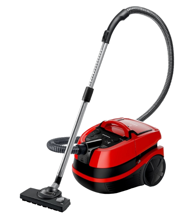 Перяща прахосмукачка, Bosch BWD421PET, 3in1 vacuum cleaner for dry and wet cleaning, 2,5 lt dust container, 2100 W, HEPA H13, 12 m radius, liquid pick-up nozzles, parquet brush, turbo brush, mattress brush, water tank: 5 l, tornado red-black