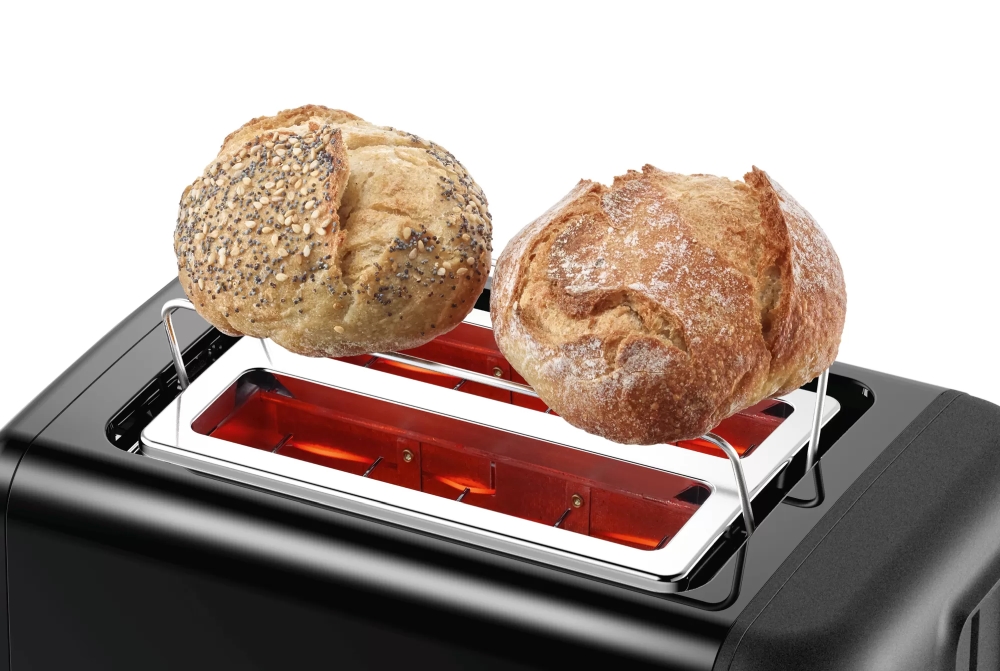 | Идеалното време за закуска е запазено за вас. Ако планирате релаксираща, небрежна закуска, тя е свързана с хрупкави хлебчета и топли кроасани. С вградената затопляща решетка хлебчетата остават перфектно свежи и се гарантират перфектни резултати. Настройка за размразяване и затопляне: размразява тоста и го прави хрупкав. Равномерно препичане на хляба с автоматично центриране. Високо повдигане : улеснява премахването дори и на малки филийки хляб. Автоматично изключване: спира тостера, когато хлябът се заклещи. |