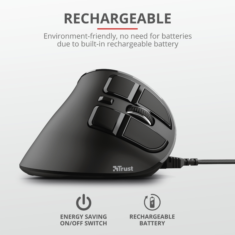 TRUST компютърна периферия и аксесоари >> TRUST Voxx Ergonomic Wireless Rechargeable Mouse