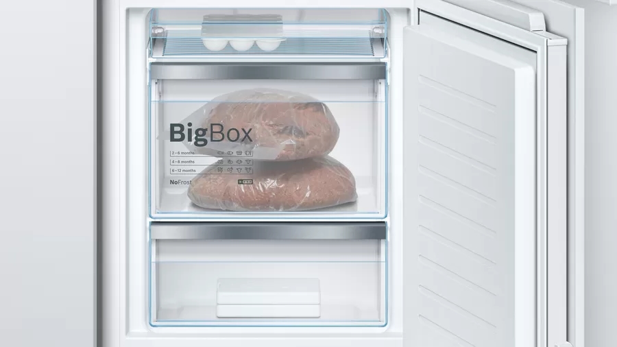 Refrigerator, Bosch KIF86PFE0 SER8 BI fridge-freezer NoFrost, E, 177,5cm, 223l(156+67), 36dB, VitaFresh Pro 55l, 2 cooling systems, display, BigBox, flush-folding