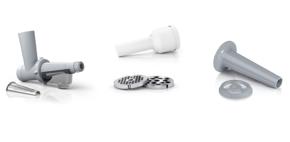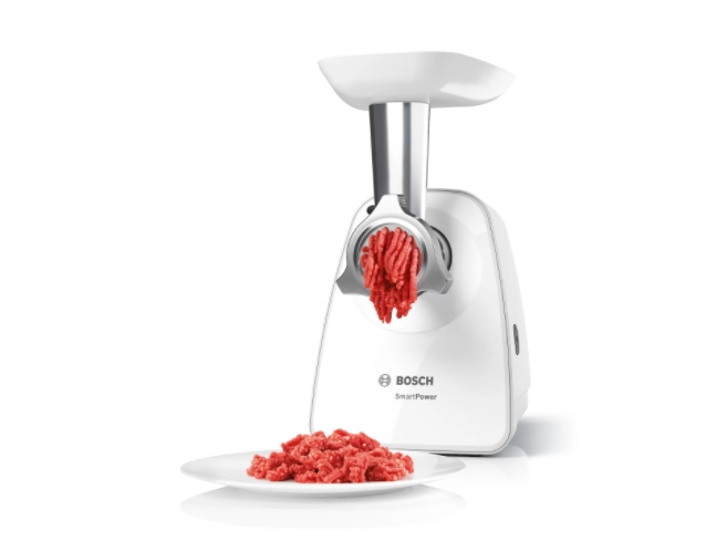 Meat mincer, Bosch MFW2515W, Meat mincer, SmartPower Meat mincer from SmartPower range: 1500W, 1,7 kg/min, 2 sieves, 1 sausage horn, fruit press attachment, no reverse, white
