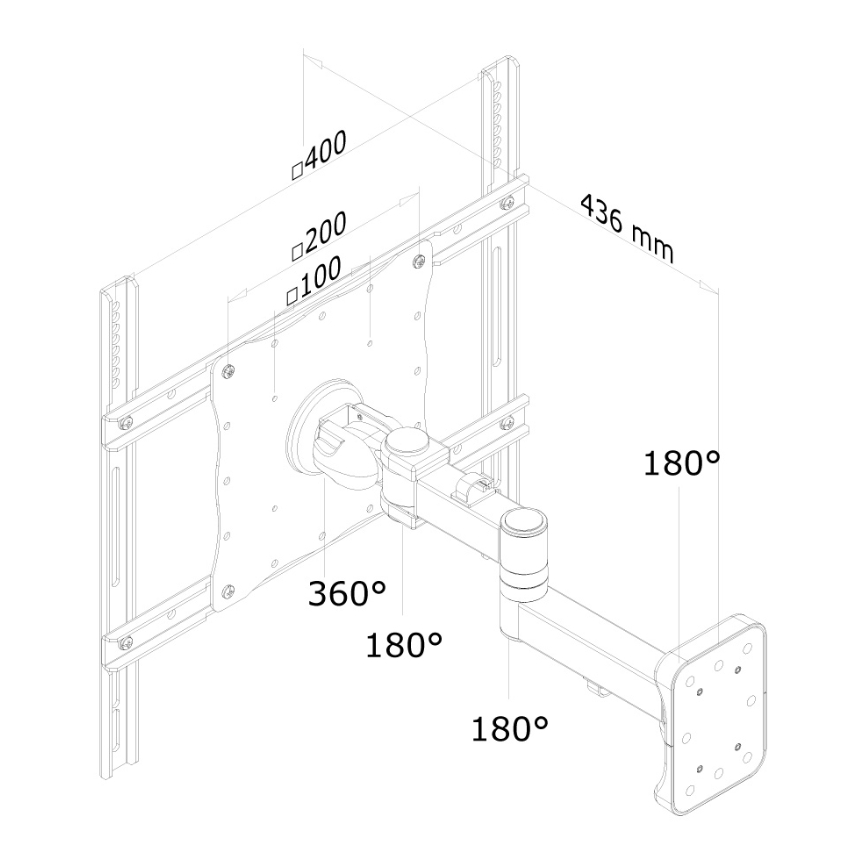 | Max VESA размер, mm | 100x100 - 400x400 |