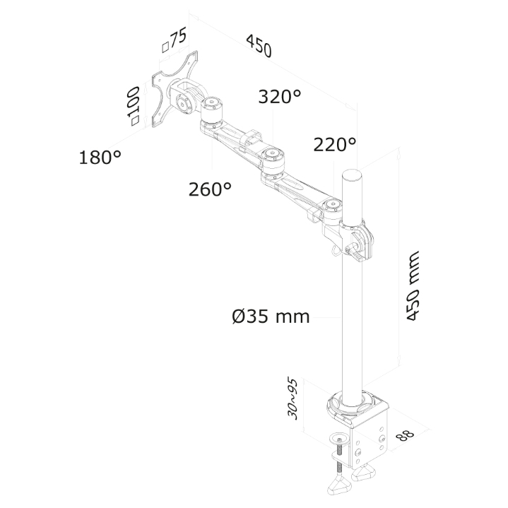 | Other | Desk mount: Clamp; Cable management |