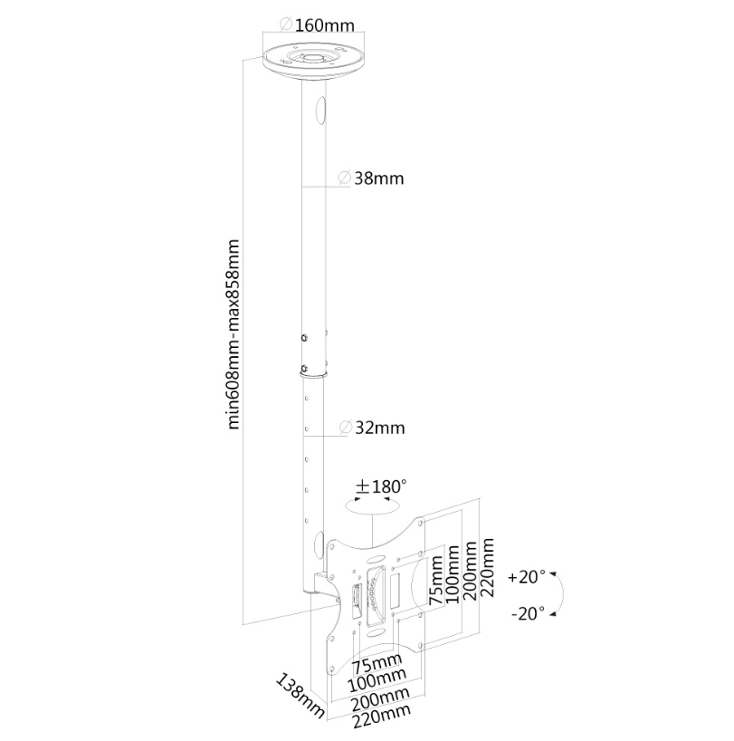 Stand, Neomounts Flat Screen Ceiling Mount (Height: 60-85 cm)