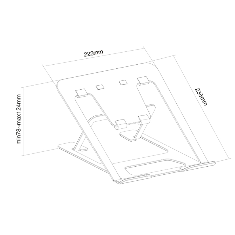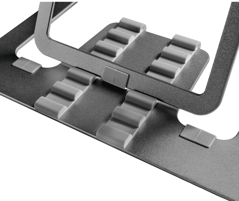 Other Stand; The open configuration ensures good ventilation of the laptop and the anti-skid silicon pads and safety ledge stopper ensure solid positioning.