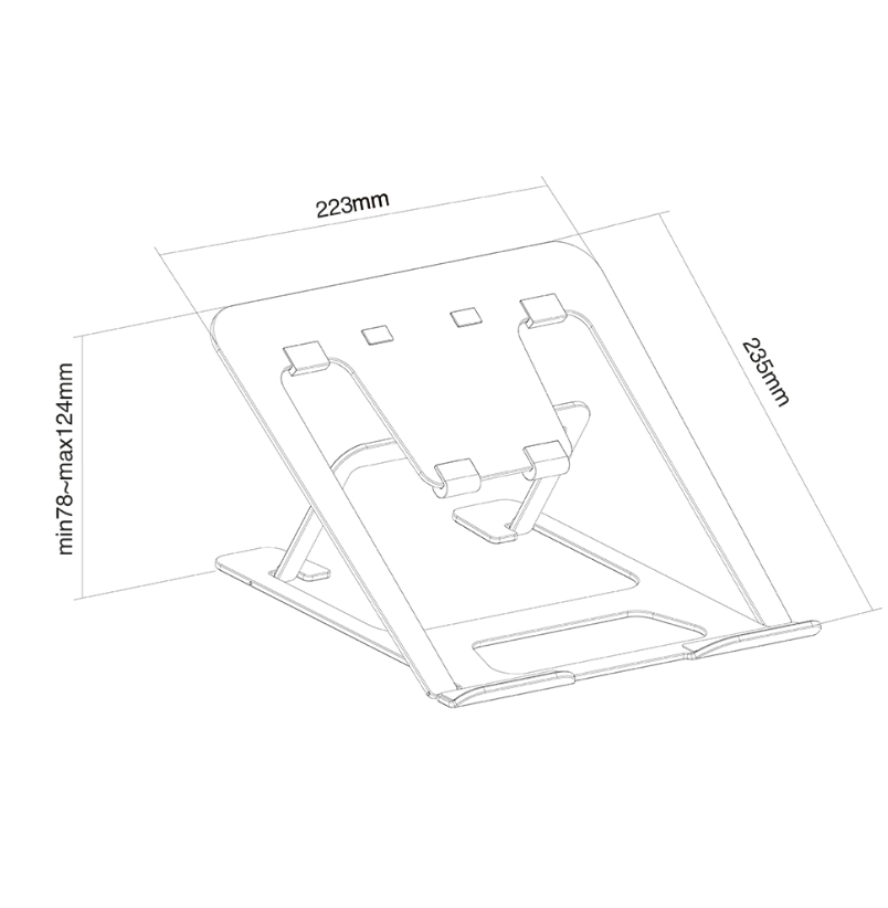 | Other | Stand; The open configuration ensures good ventilation of the laptop and the anti-skid silicon pads and safety ledge stopper ensure solid positioning. |