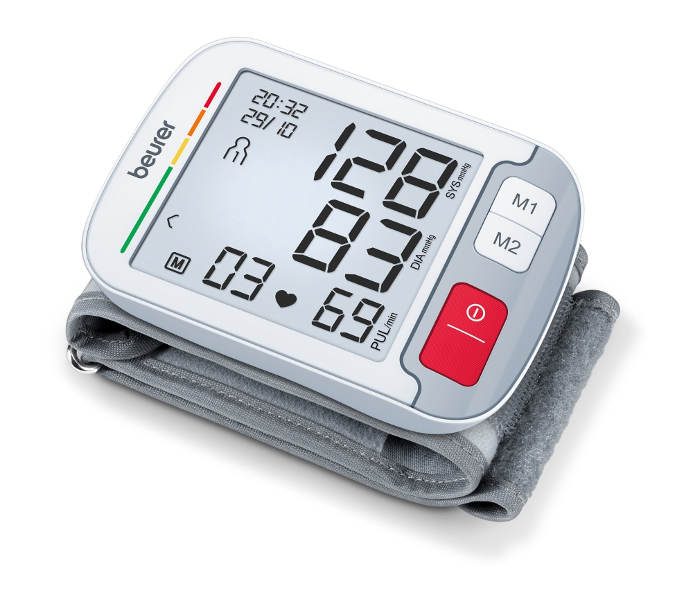 Blood pressure monitor, Beurer BC 51 wrist blood pressure monitor, Positioning indicator, Inflation technology, Large, very easy-to-read XL display, Extra slim design, 2 x 120 memory spaces, Risk indicator, Arrhythmia detection, Ccircumferences from 12.5 to 21.0 cm