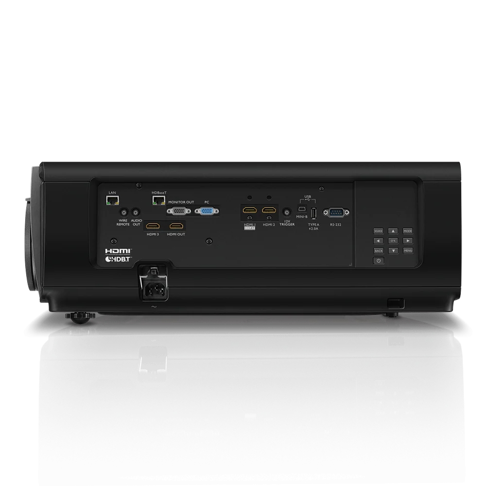 | Входове | LAN Port (RJ45 for Network control), HDBaseT (4K, HDCP 2.2 for audio/video, and IR remote control), PC In (D-sub 15pin, Female), 12V Trigger, USB Mini-B (Service), USB Type-A (2A power), RS232 In (D-sub 9pin, male), IR Receiver, IR Receiver(Front/Rear) |